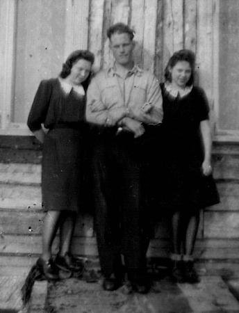 Karelarflickorna Hilkka och Sinikka tillsammans med Knut Nygård (Nyygos Knuut).