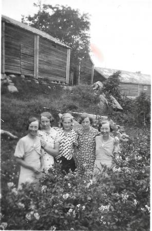 Fr.v: okänd, okänd, Ragnhild Frants (1916-1990), Elna Frants (1909-1998) okänd.