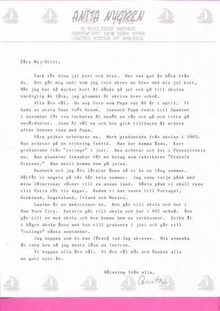 Emigration Maj-Britt Näsmans kusiner fr Am brev