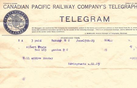 Emigration Edvin Frants telegram
