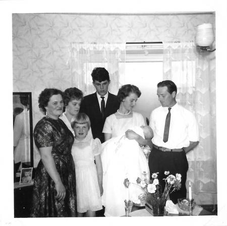 Fr.v: Margit Krus, Birgitta Krus (Fochsell), Lisbeth Krus (Berg), Kurt Snickars, Margaretha Wikström (Johansson), Albin Krus.