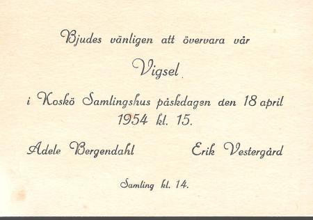 Bröllopsinbjudan Adele Bergendahl och Erik Vestergård