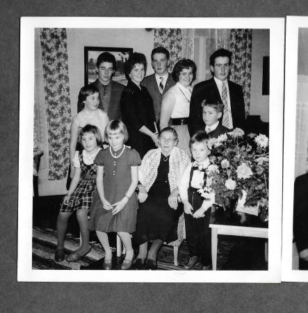 Fr,v: Christina Burman (Ehrnström), Viola Björk (Mitts), Barbro Burman (Storlund), Farmor o. Mormor Matilda Burman, Elis Björk, Bo-Rainer Burman.