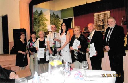 Uppvaktning av sex medlemmar på hem-bygdsföreningens 60-årsjubileum.