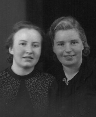 T.v. Dagny Elin Linnea Burman (Cooper, 1918-1995, Smedis Dagny) och Gladys Alina Burman (Södergård, 1913-1999, Abbis Gleedes).