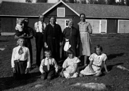 Alla andra okända personer. Bilden är tagen på gården vid Ida Asp, med fähuset i bakgrunden.