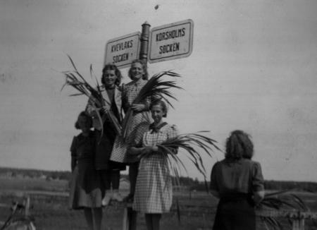Flickorna Vivi Bertholm, Lenna Nygård g. Häggblom), okänd, och Linnea Frants (g. Eriksson)