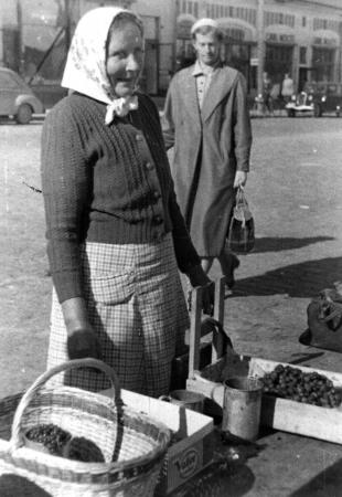 Anna Holm säljer jordgubbar på Vasa torg.