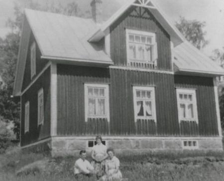 (f. Holm, 1909-1989). Framför huset Erik, Jenny och dottern Elsie-Maj.