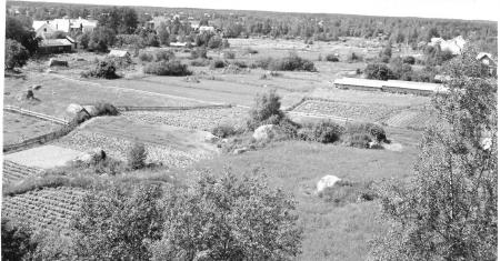 Längst t.v. syns samlingshuset, längst till höger Helge och Linnea Eriksson hus.