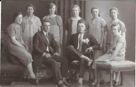 Damerna fr.v: Julia Nygård, Matilda Nygård, Helmi Burman, Okänd, Elna Frants, okänd, Helga burman.