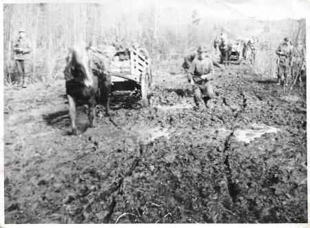 Krigstiden kärra i lera